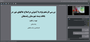 دراین برنامه مهندس رضا بمانی در خصوص کم آبی ؛ شوری آب و زمینهای کشاورزی و باغات پسته در سطح استان مواردی رابیان نمودند.واز اکثریت مراکزجهادکشاورزی شهرستانها وتعدادی از کشاورزان در این برنامه حضور داشتند .